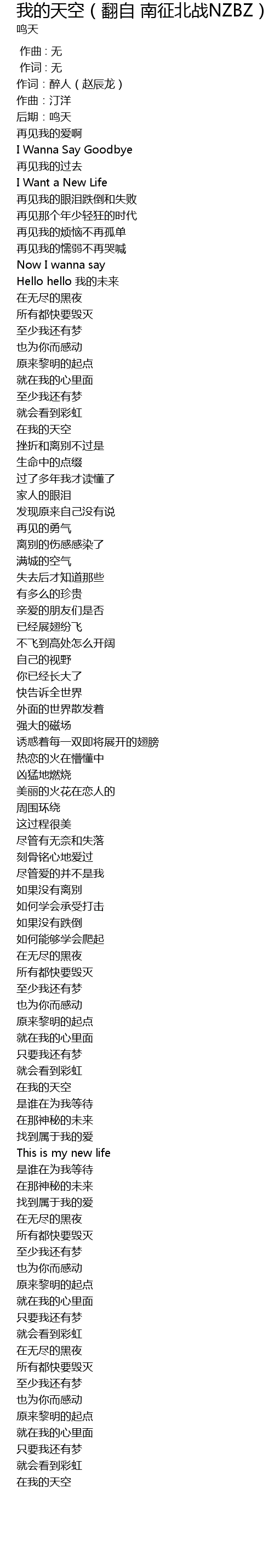 | [01:05.08] | 在我的天空 |