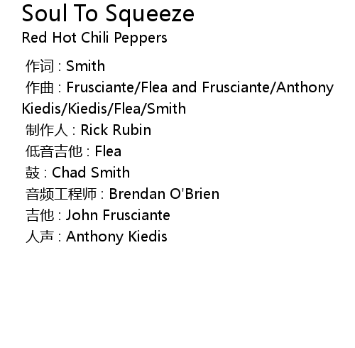 | [00:00.000] | zuo qu : Frusciante Flea and Frusciante Anthony Kiedis Kiedis Flea Smith |