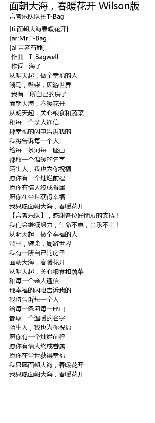 | [03:19.12] | 我只愿面朝大海,春暖花开 |