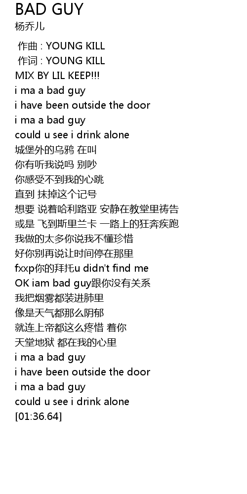 | [00:33.62] | i ma a bad guy |