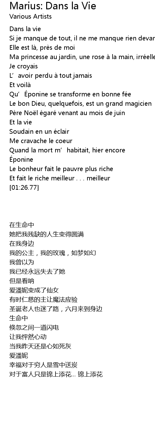 | [00:00.80] | Dans la vie |