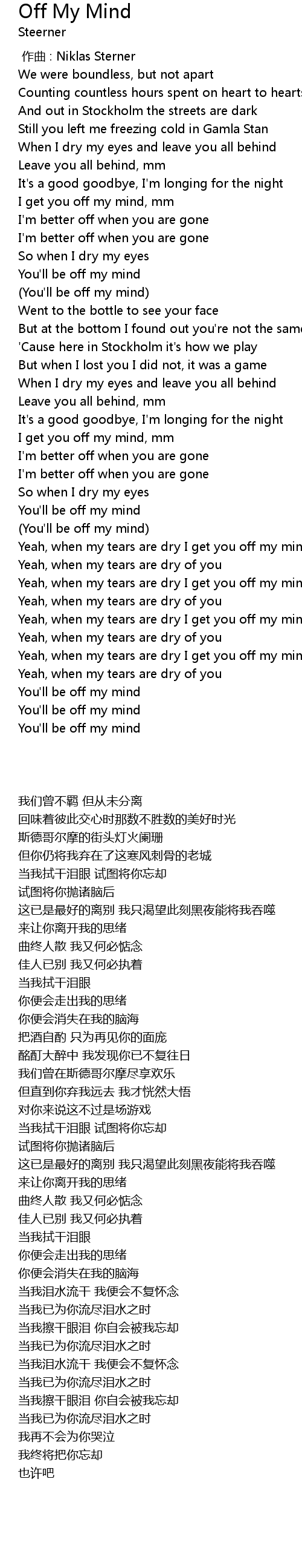 | [00:00.000] | zuo qu : Niklas Sterner |