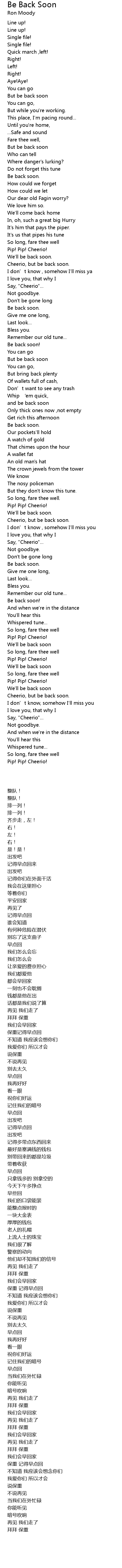 | Song | Be Back Soon |