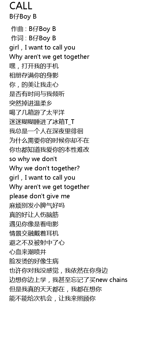 | [00:00.000] | 作曲 : B仔Boy B |