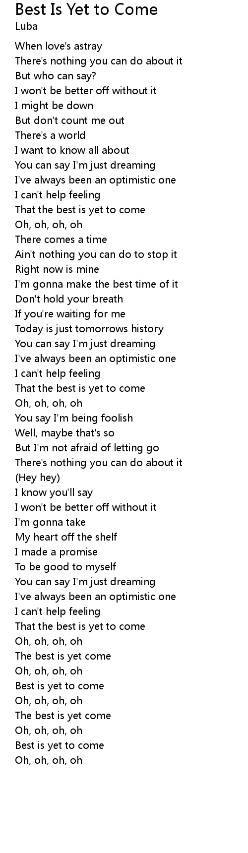 Best Is Yet to Come Lyrics