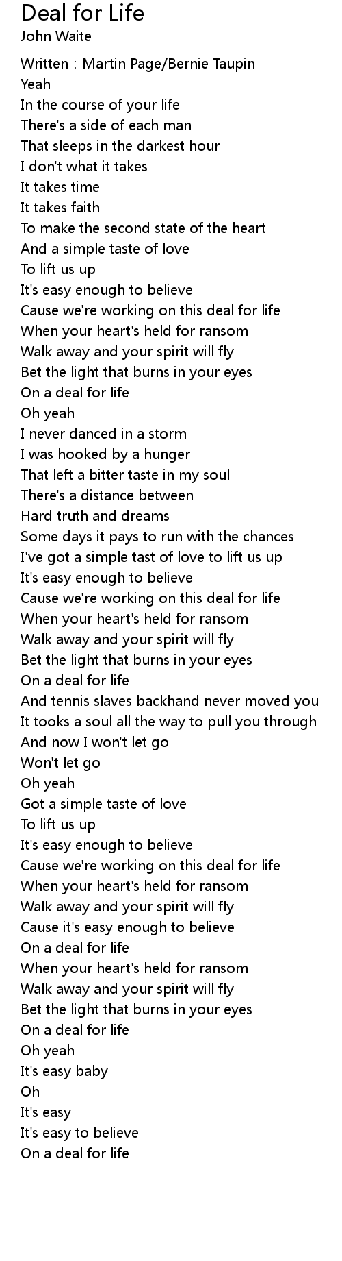 | On a deal for life | |
