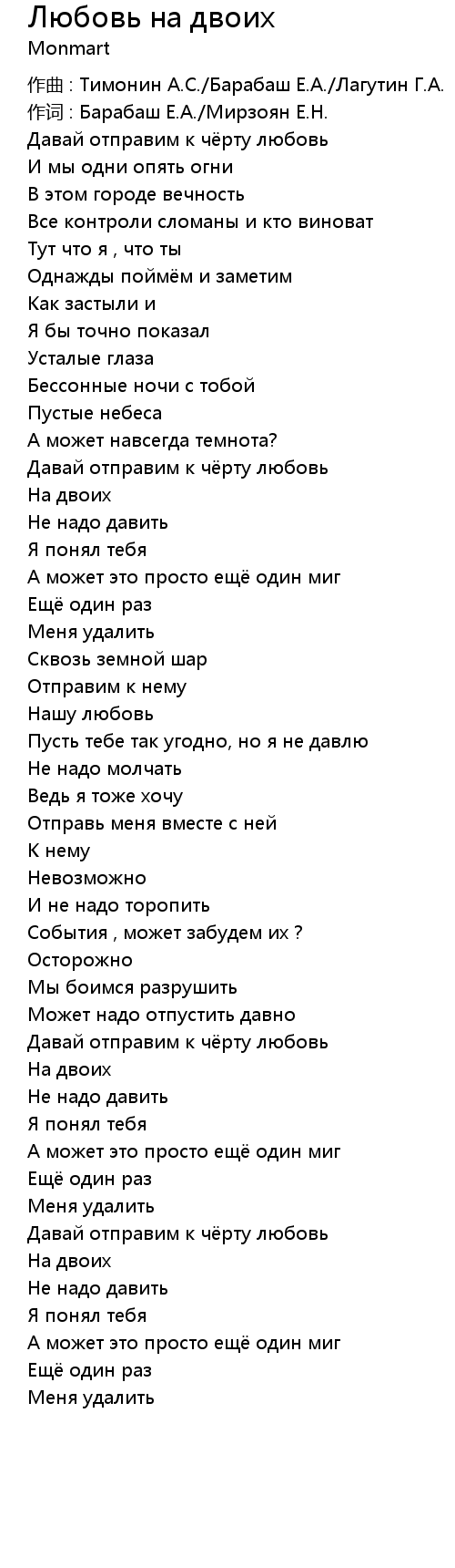 作词 : Барабаш Е.А./Мирзоян Е.Н.