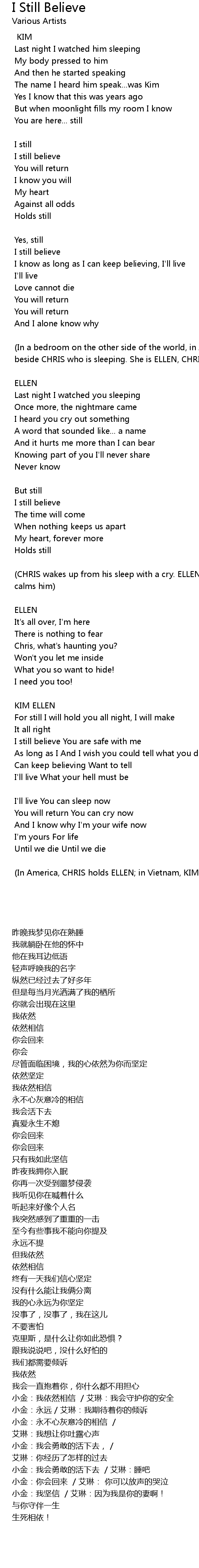 Can keep believing Want to tell |