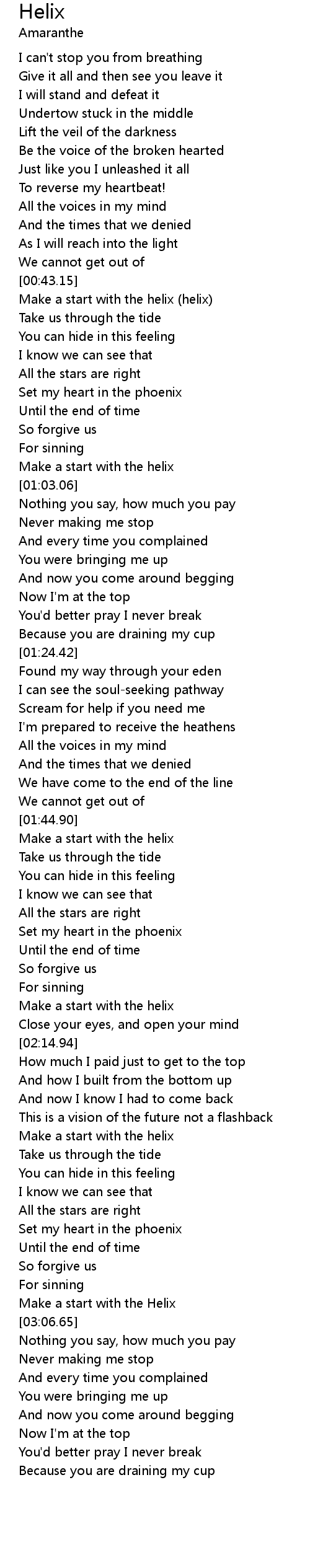 | [00:43.41] | Make a start with the helix (helix) |