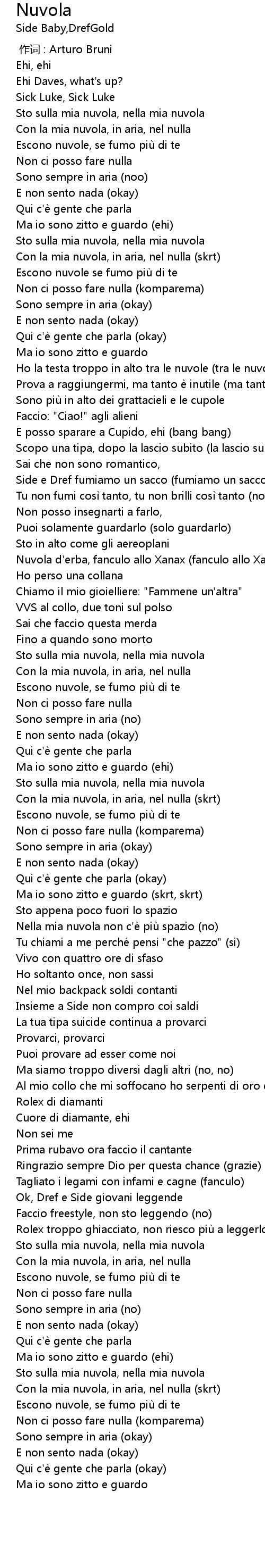 | [01:46.93] | Con la mia nuvola, in aria, nel nulla (skrt) |