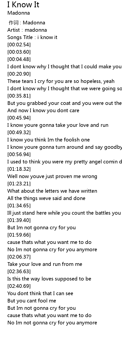 | [00:00.00] | 作词 : Madonna |