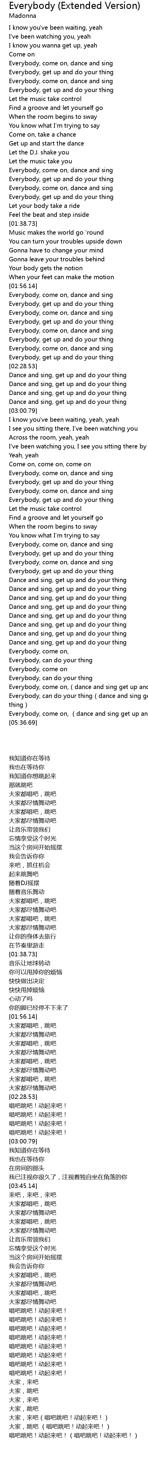 | [05:32.53] | Everybody, come on, (dance and sing get up and do your thing) |