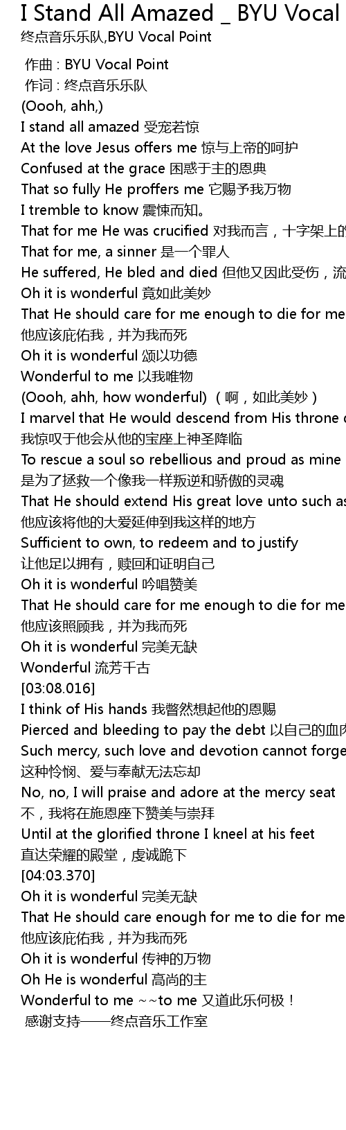 | [02:40.927] | Oh it is wonderful 吟唱赞美 |