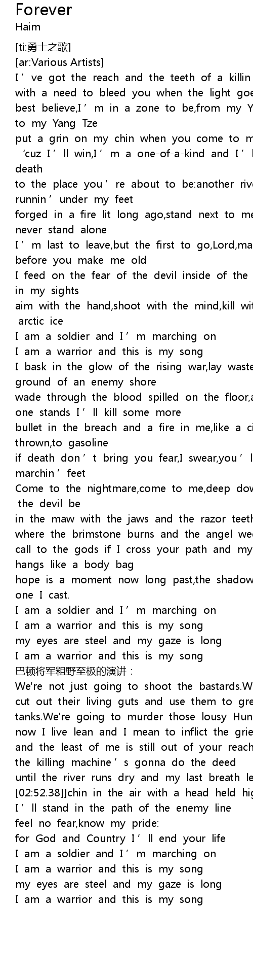 | [03:03.00] | I am a soldier and I ' m marching on |