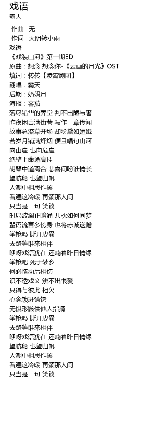 | [00:07.57] | 填词:转转【凌霄剧团】 |