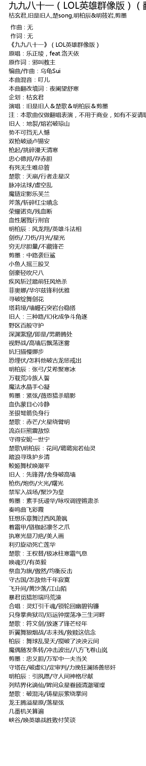 | [00:01.73] | 《九九八十一》(LOL英雄群像版) |