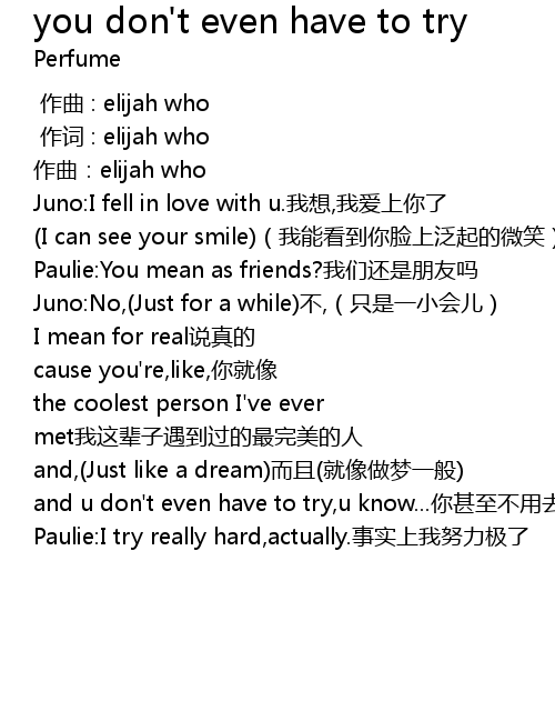 | [00:02.51] | Juno: I fell in love with u. wo xiang, wo ai shang ni le |