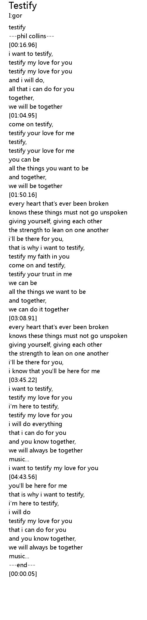 come on testify, |