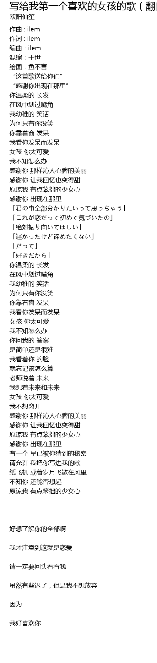 | Song | 写给我第一个喜欢的女孩的歌(翻自 洛天依) |