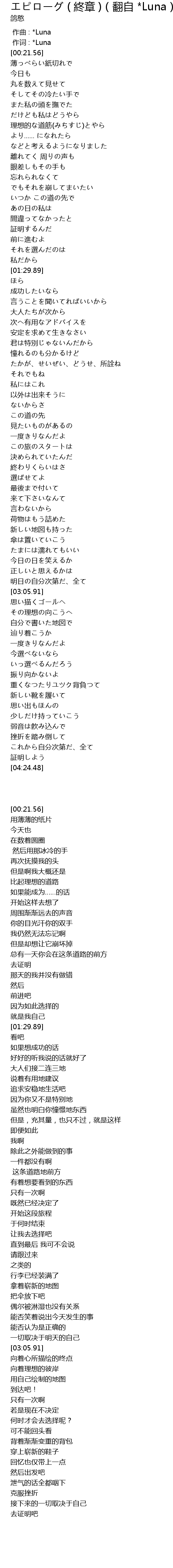| Song | エピローグ ( 終章 )(翻自 *Luna) |