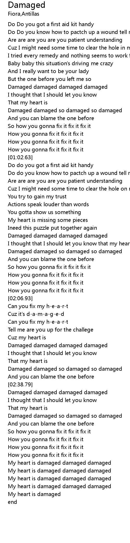 | [02:39.47] | Damaged damaged damaged damaged |