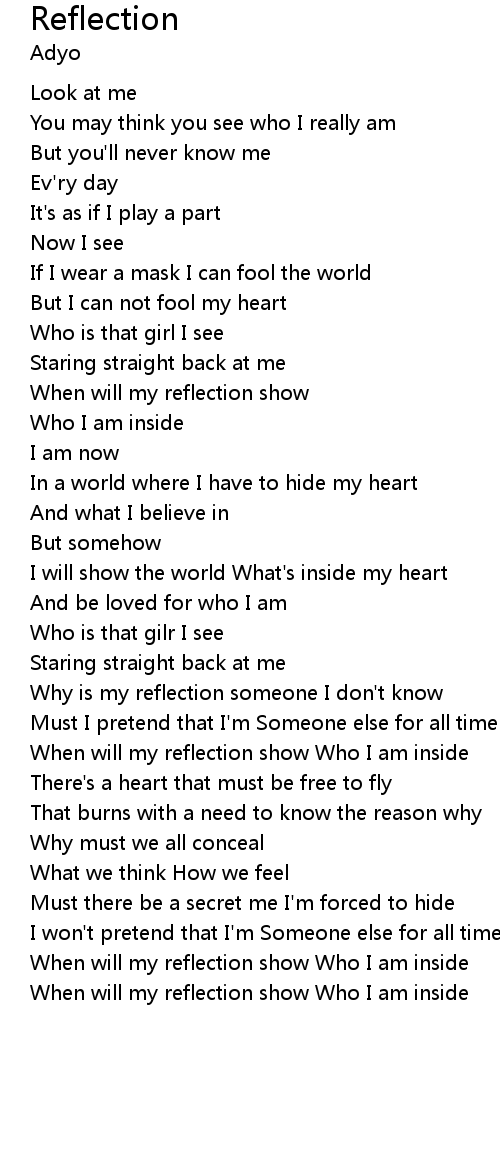 When will my reflection show Who I am inside |