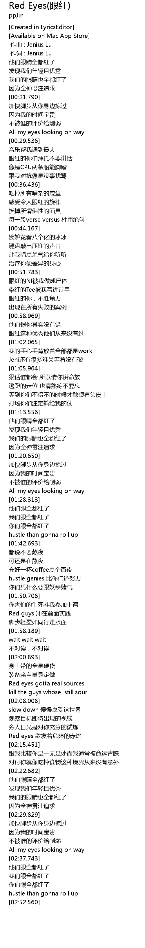 | [02:23.000] | tā men yǎn jīng quán dōu hóng le |