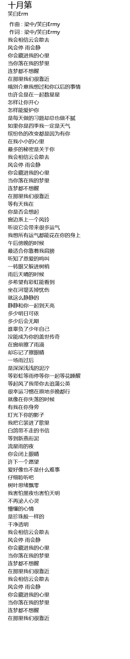| [00:01.000] | zuò cí : liáng zhōng xiào bái Ermy |