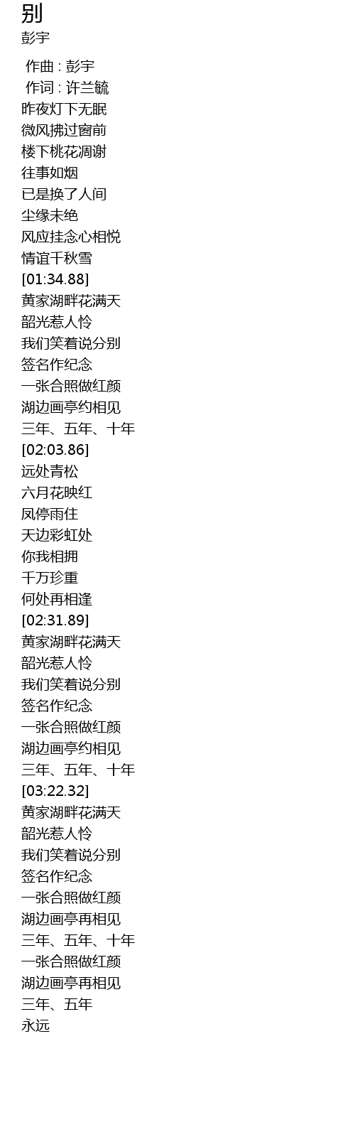 | [00:00.000] | 作曲 : 彭宇 |