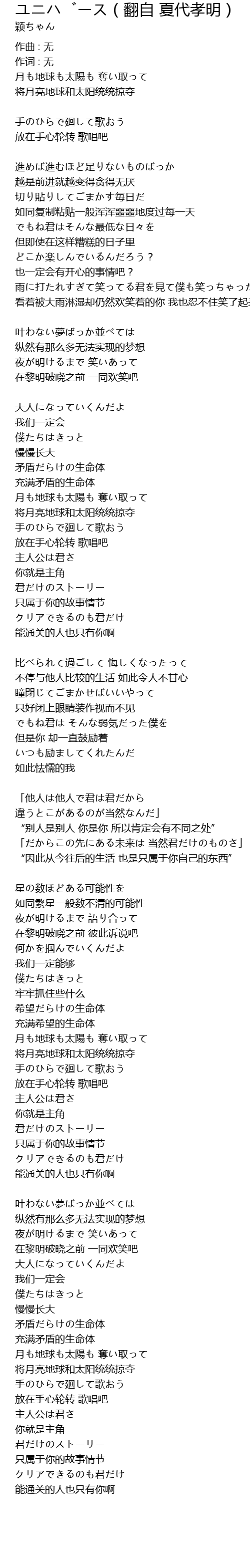 | 「他人は他人で君は君だから 違うとこがあるのが当然なんだ」 | |