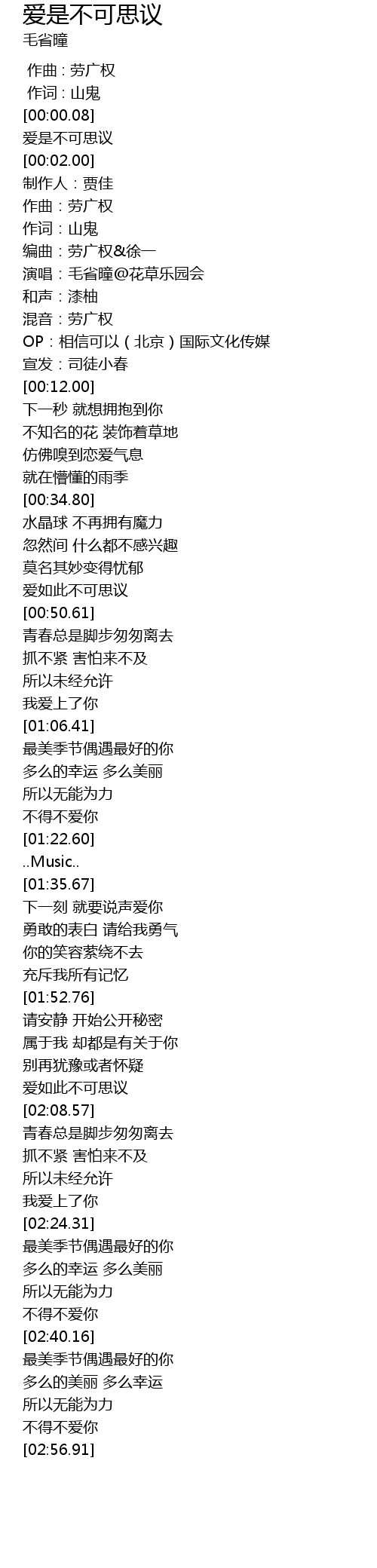 | [02:05.51] | 爱如此不可思议 |