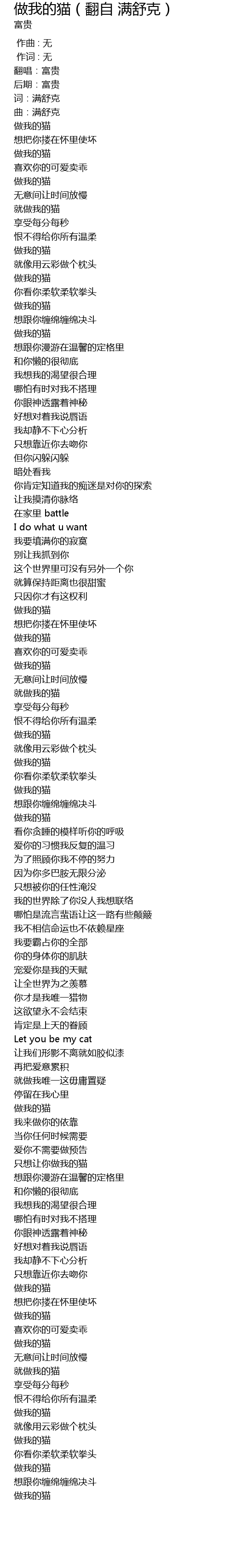 | [02:55.05] | zhǐ xiǎng ràng nǐ zuò wǒ de māo |