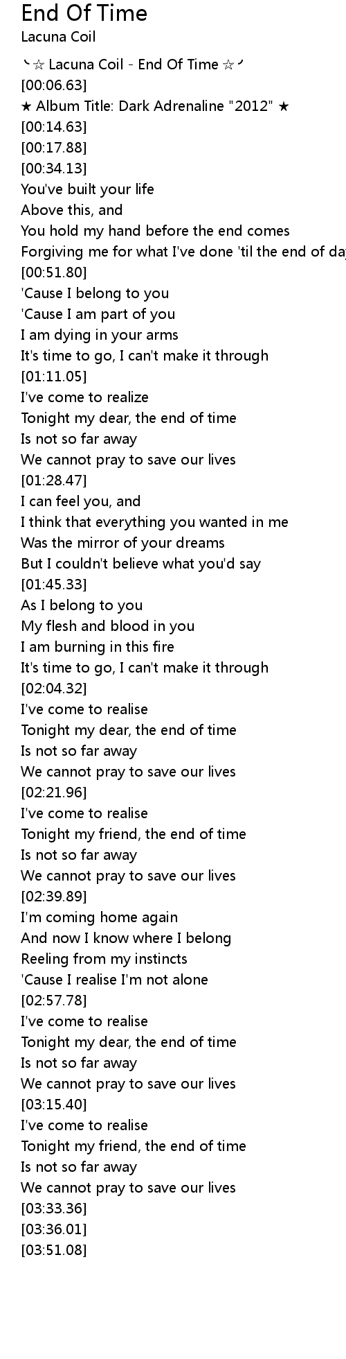 | [00:01.00] | Lacuna Coil End Of Time |