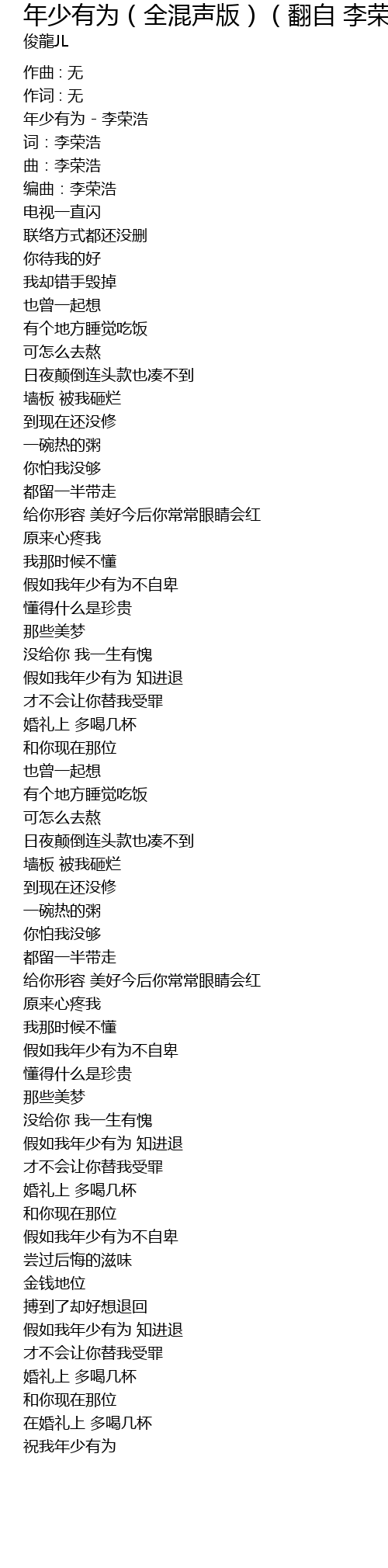 | Song | 年少有为(全混声版)(翻自 李荣浩) |