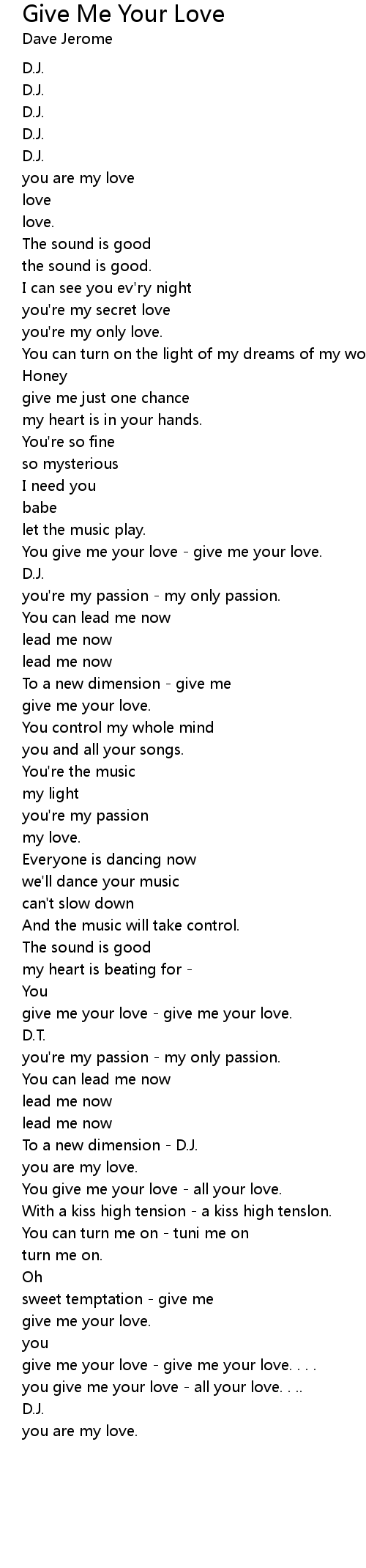 give me your love - give me your love. . . . |