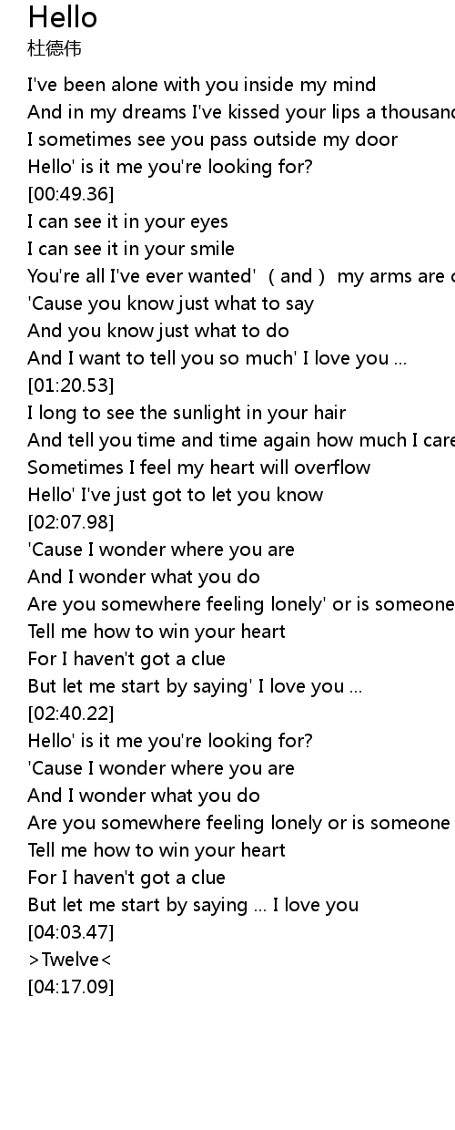 | [00:41.94] | Hello' is it me you' re looking for? |
