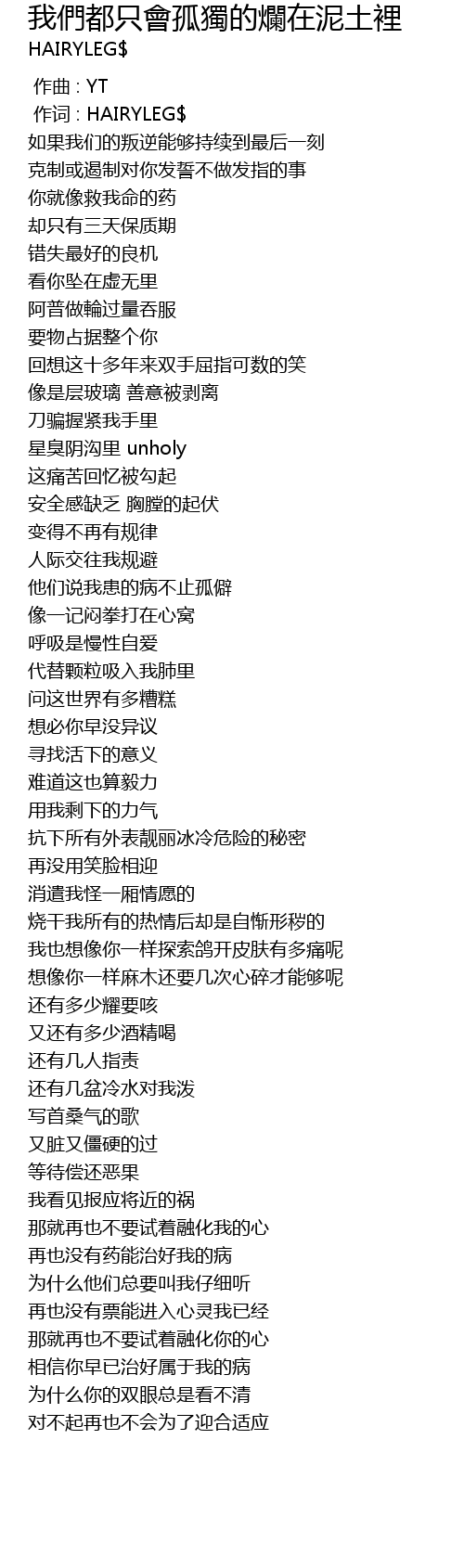 | Song | 我們都只會孤獨的爛在泥土裡 |