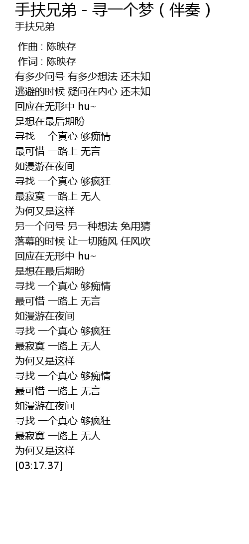 手扶兄弟 - 寻一个梦(伴奏) shou fu xiong di  xun yi ge meng ban zou Lyrics