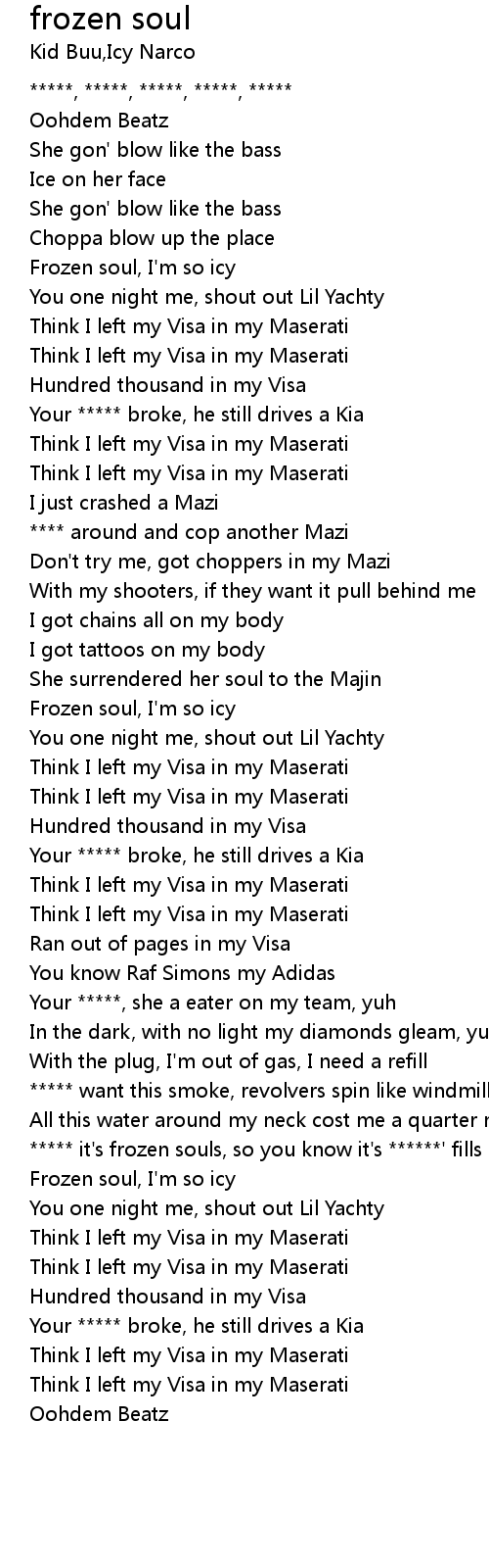 | [01:48.28] | ***** it's frozen souls, so you know it's ******' fills |