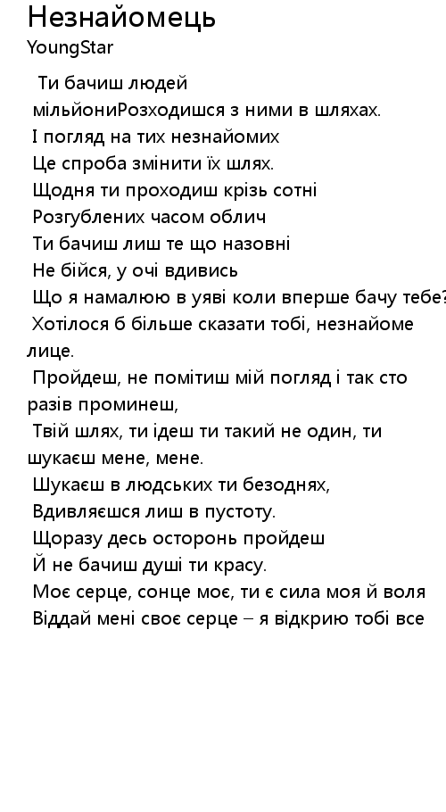 Незнайомець  Lyrics
