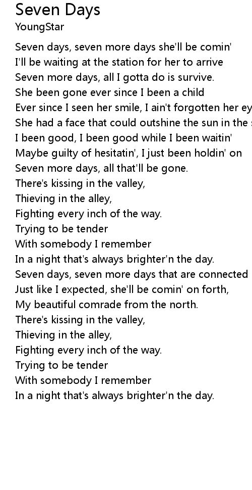 Seven days, seven more days she'll be comin' |