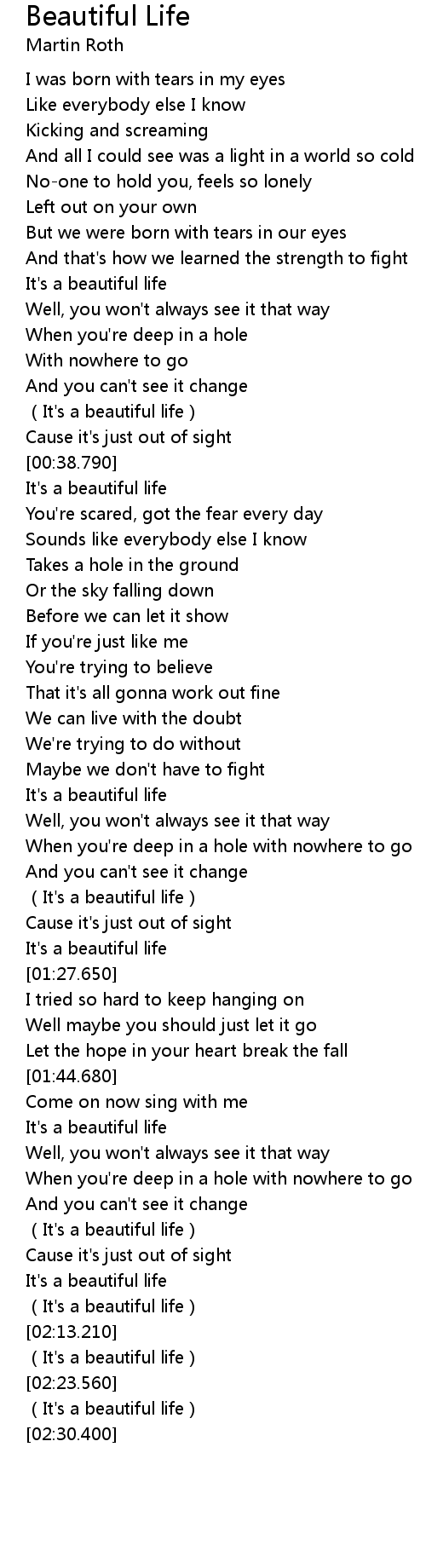 | [00:40.310] | It's a beautiful life |