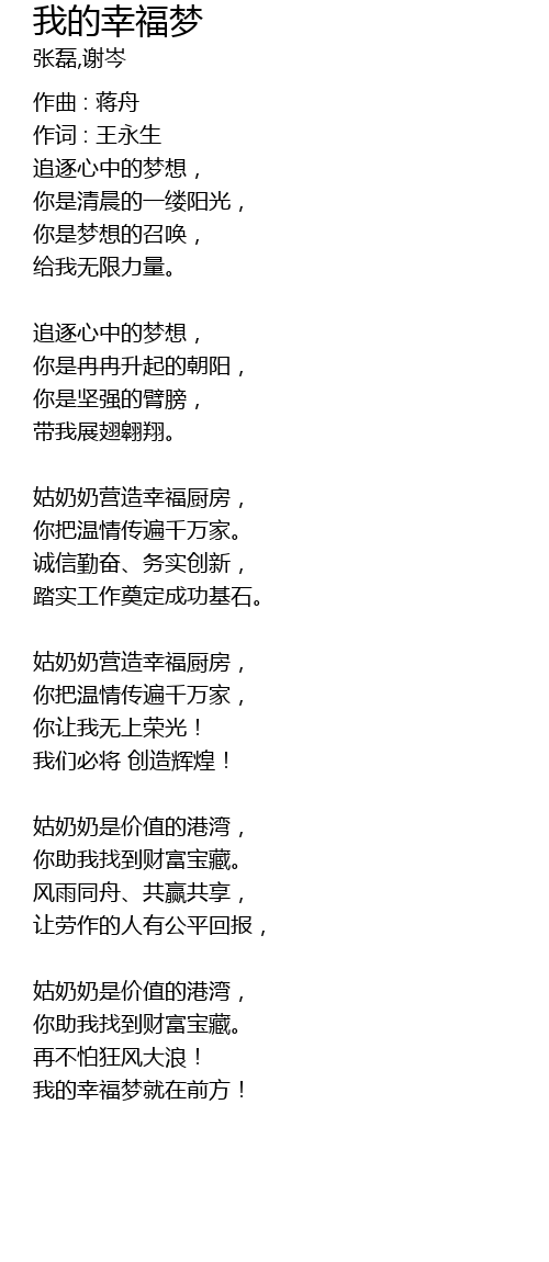 | wǒ de xìng fú mèng jiù zài qián fāng! |