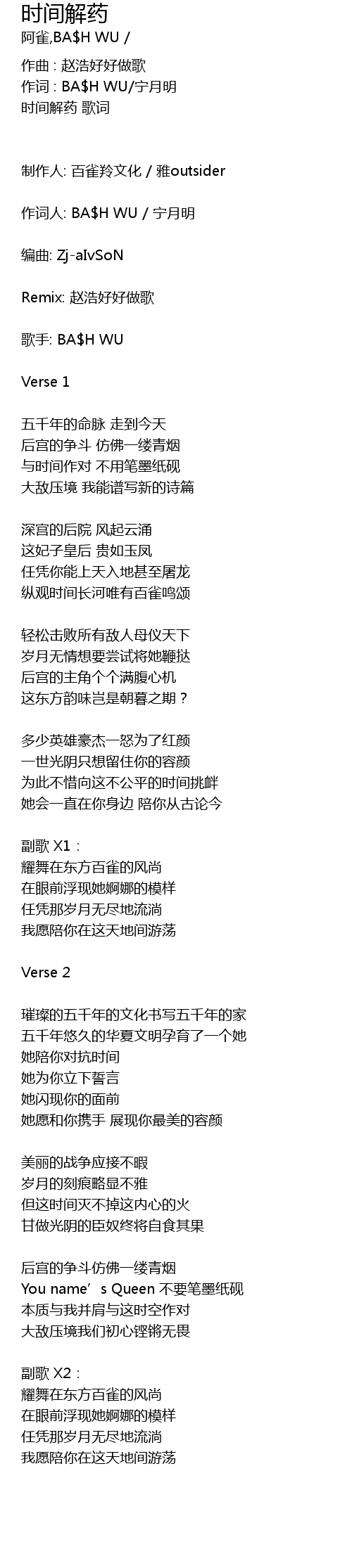 | 作词 : BA$H WU/宁月明 | |