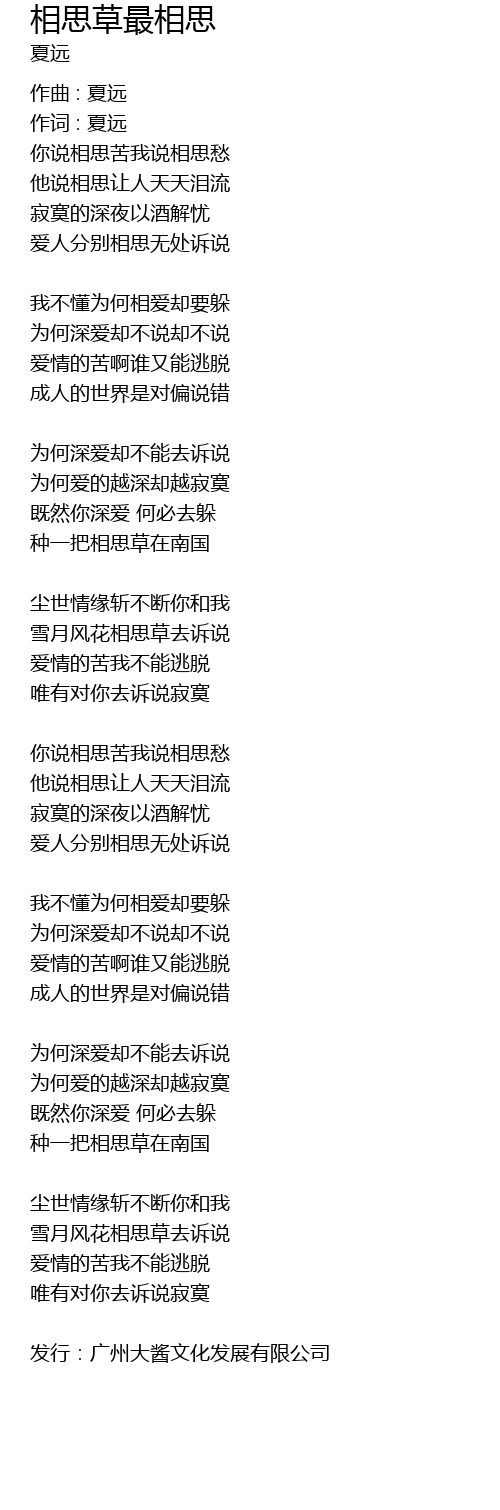 | ni shuo xiang si ku wo shuo xiang si chou | |