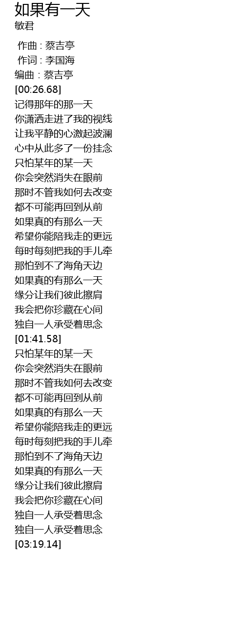 | [00:50.96] | zhi pa mou nian de mou yi tian |