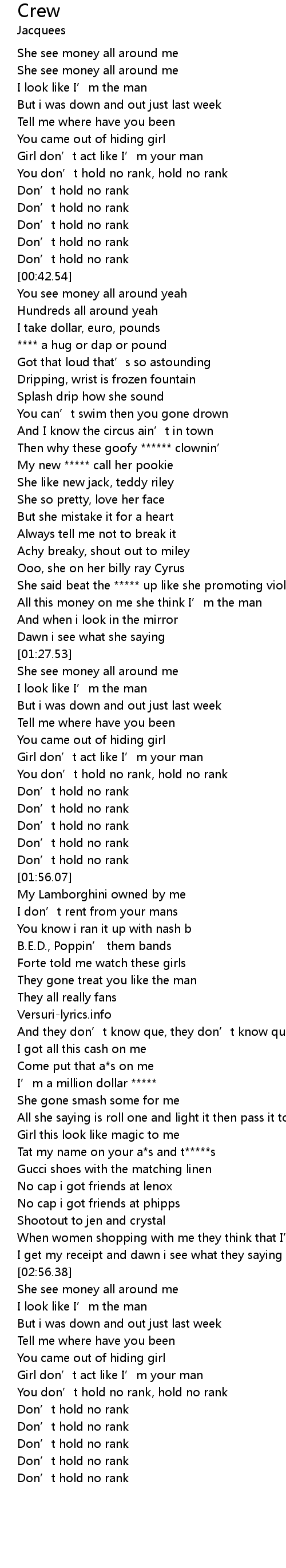 | [00:35.20] | You don’t hold no rank, hold no rank |