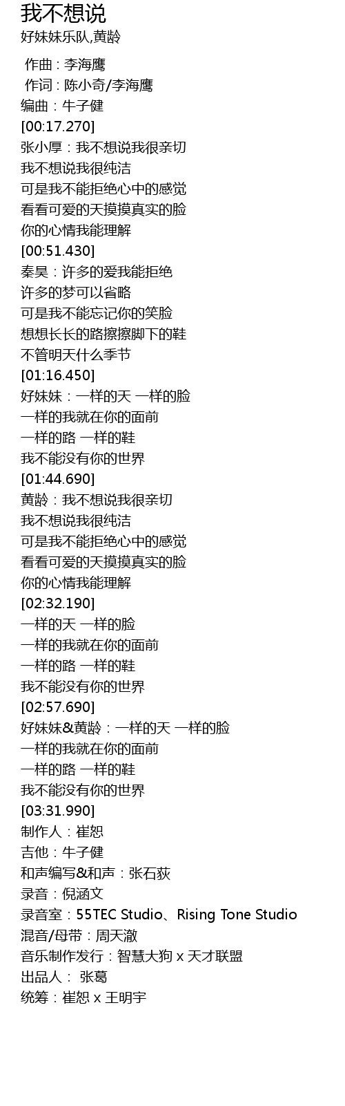 | [02:58.060] | 好妹妹&黄龄:一样的天 一样的脸 |