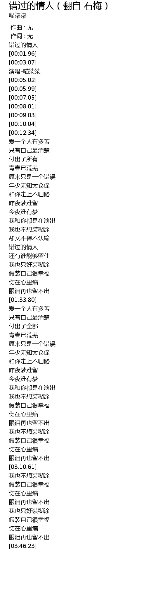 | [00:36.88] | yuán lái zhǐ shì yí gè cuò wù |