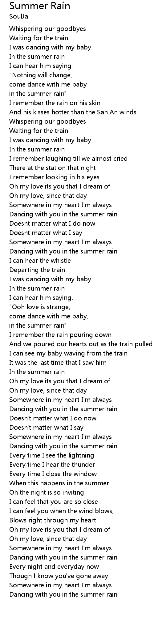 Summer Rain Lyrics